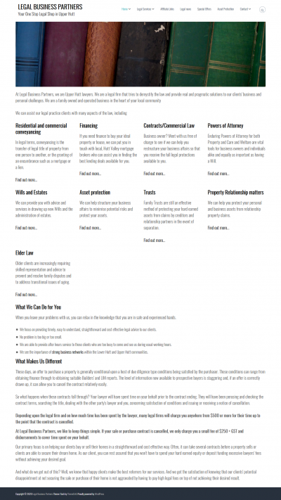 Legal Business Partners are Upper Hutt lawyers. They are a legal firm that tries to demystify the law and provide real and pragmatic solutions to our clients’ business and personal challenges. We manage and maintain their Wordpress website.